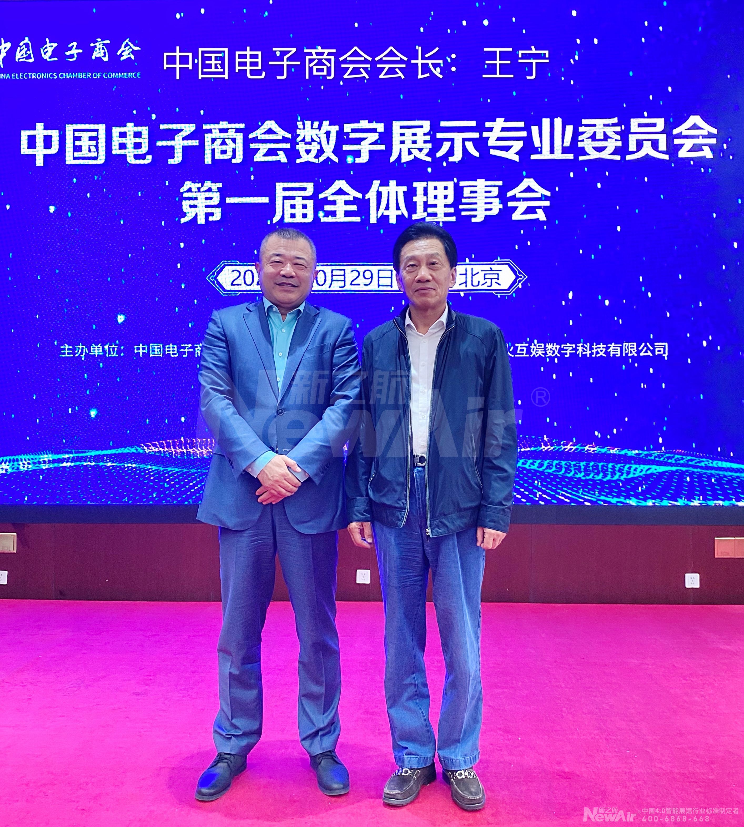 中國電子商會(huì)會(huì)長王寧(右)和新之航傳媒科技集團(tuán)有限公司董事長鞠航